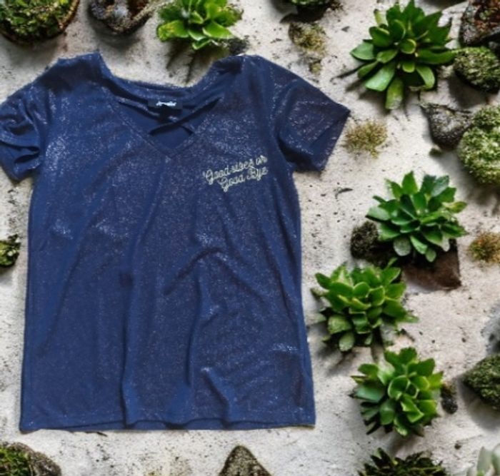 T shirt marine pailleté doré Jennifer XS - photo numéro 1