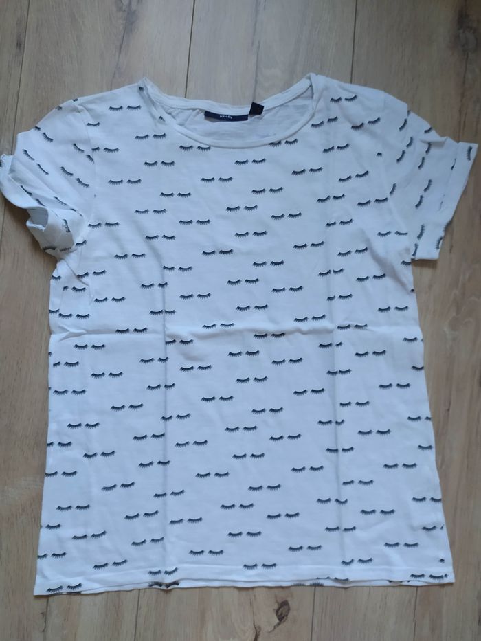 T shirt blanc imprimé cils yeux S - photo numéro 1