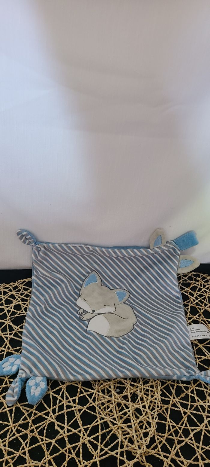 Doudou renard CAD Distri Center carré plat bleu - photo numéro 1