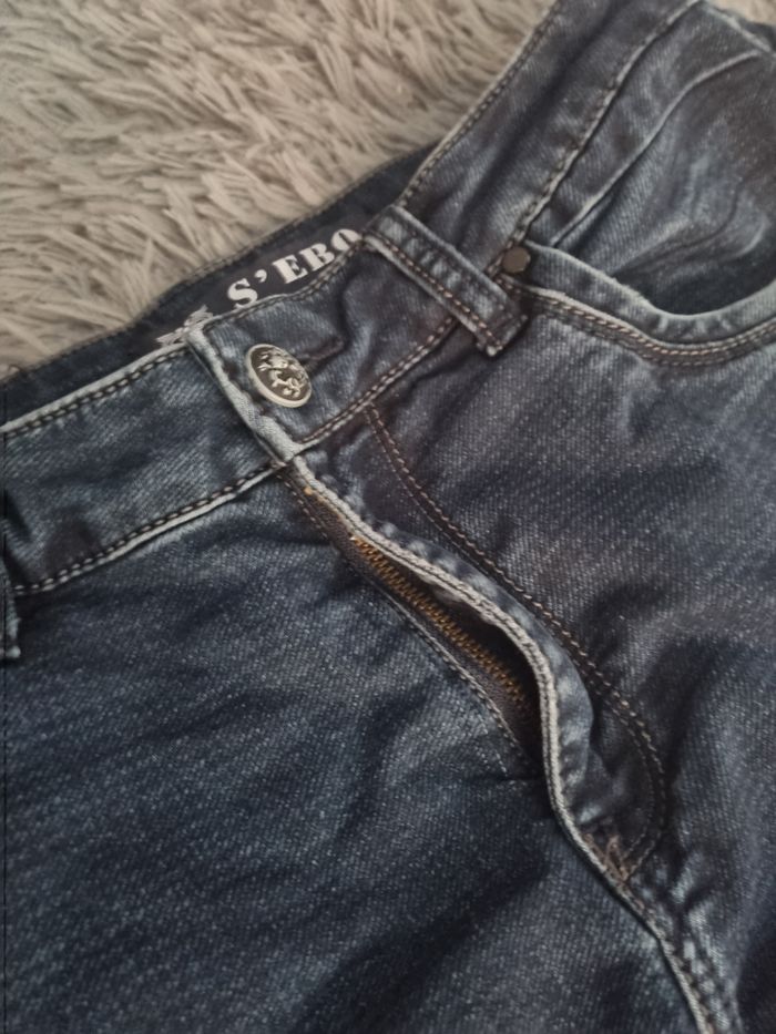 Jean marine ,taille 32 marque S'ebo,longueur 91cm, largeur de la taille 42cm, largeur cuisse 28cm, largeur cheville 12cm,léger défaut voir dernière photo.