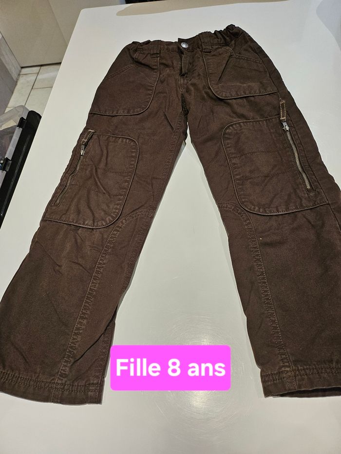 Pantalon marron doublé. Se ferme par pression et fermeture. Taille réglable. Poches devant et derrière. Marque : DPAM Taille : 8 ans