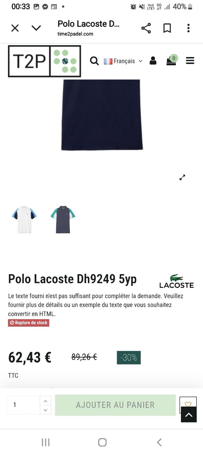 Polo lacoste regular fit neuf avec étiquette 🏷 Acheter 64 euros