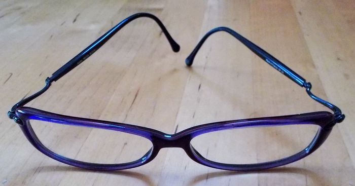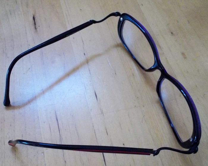 Lunettes de Vue "Axebo Milka", modèle classique, monture légère couleur prune et noir, verres à remplacer à votre vue, tbé.