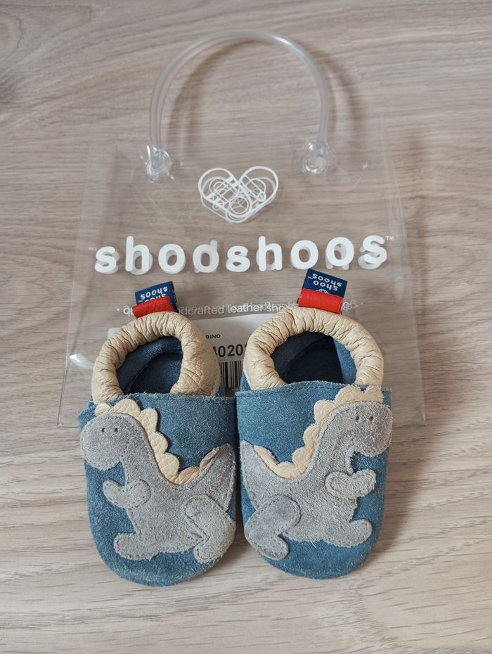 Chaussons en cuir garçon, motif dinosaure, pointure 0-6 mois. Fabriqués à la main. Ils ont déjà été portés mais restent en bon état.