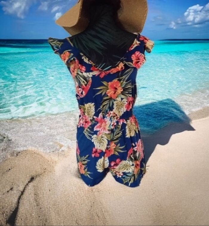 Combishort bleu fleuri Atmosphère 34 - photo numéro 4