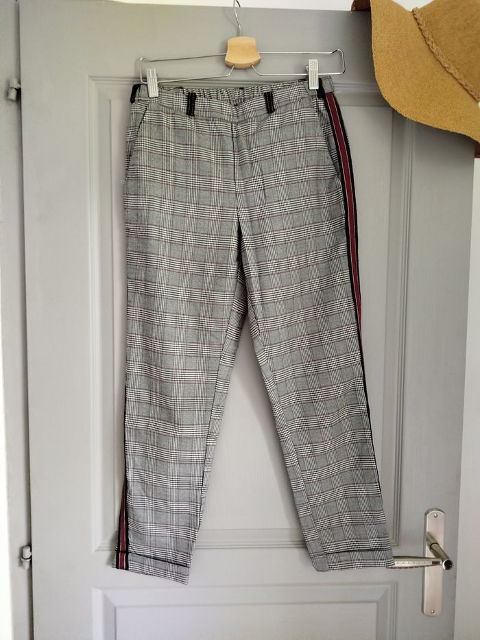 Pantalon chino city à carreaux bande côté 34 - photo numéro 1