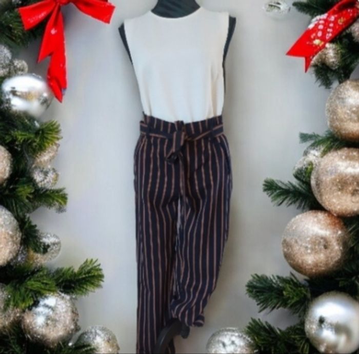 Taille haute avec ceinture donc très féminin Pantalon large Tour de taille 34 cm ( taille haute). Possibilité de serrer avec ceinture. Possibilité taille extensible avec élastique 42 cm ( en enlevant les fronces de la taille) Tour de cuisses 28 cm Longueur entrejambe 65 cm (pantalon 7/8eme) Possibilité de remise en main propre sur REMIREMONT ou envoi #pantalonfemmenaldocel88 #femme34naldocel88
