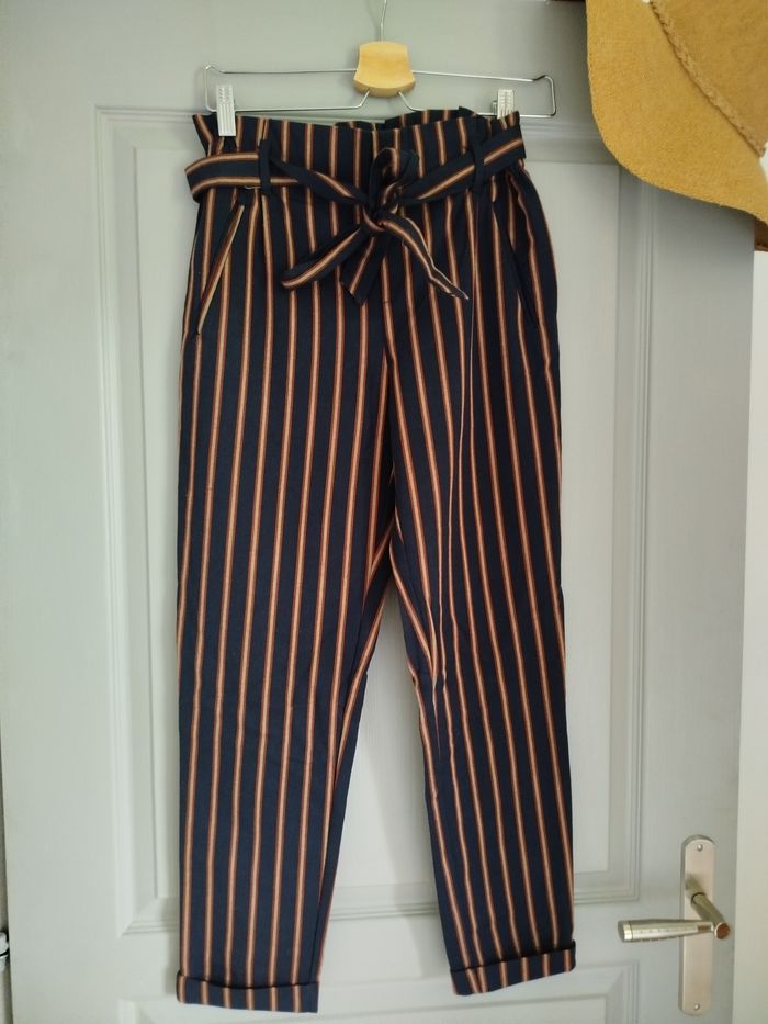Pantalon marine rayé Zara 34 - photo numéro 3