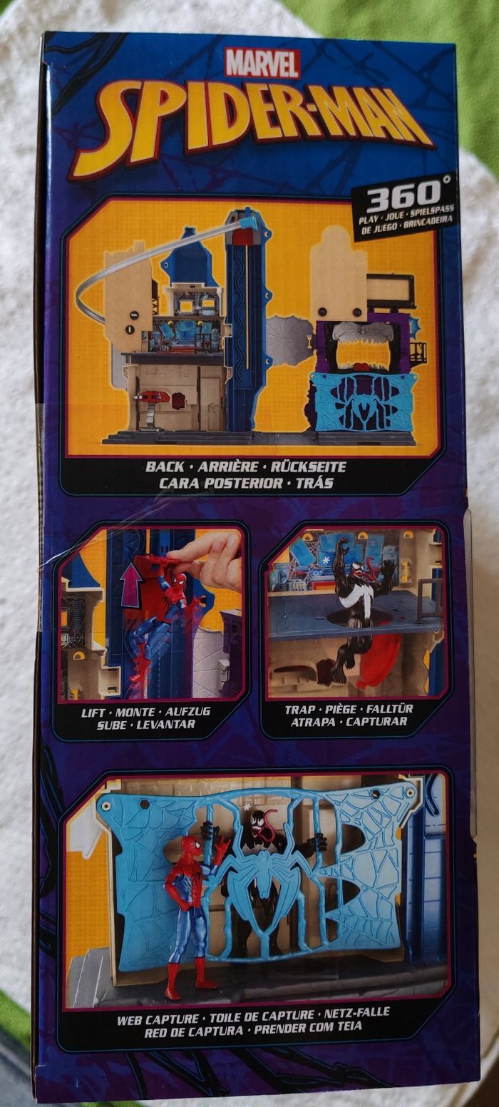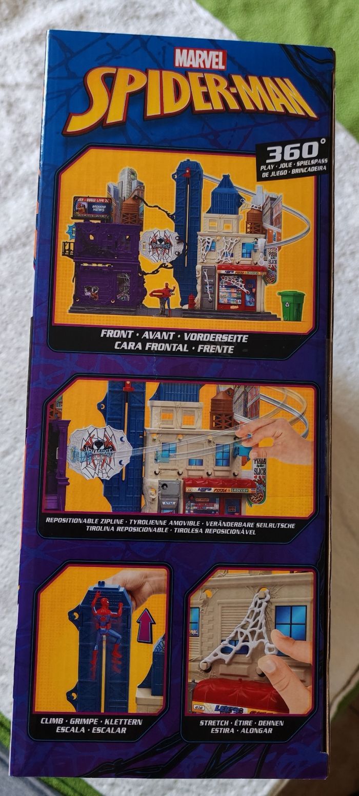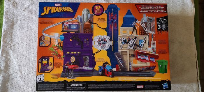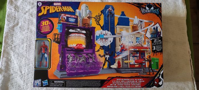 Bonjour, je vends "la ville des lanceurs de toile" Spiderman - Venomversus Marvel. Figurine Spiderman incluse Neuf ⚠️ Taille du carton : L 51cm x l 34,5cm x P 14cm ⚠️ Figurines et véhicules illustrés non inclus (comme indiqué sur la boîte).