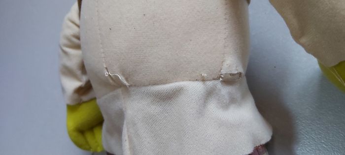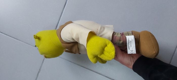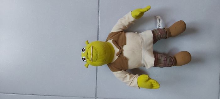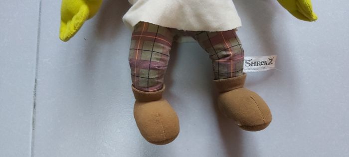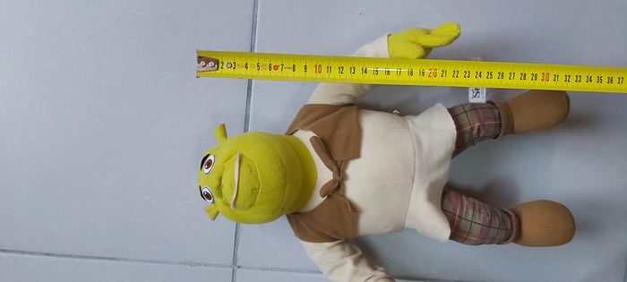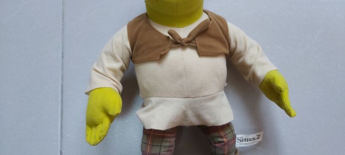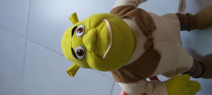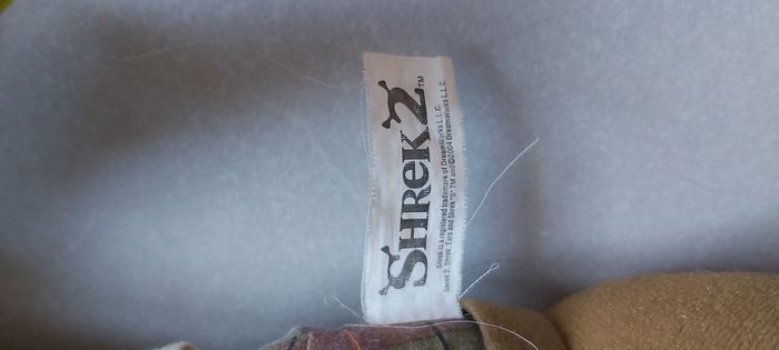 .Peluche : Shrek 2 Niveau du dos : un fil tiré et côté un peu décousu #carineddijeux
