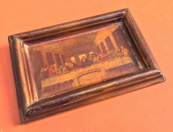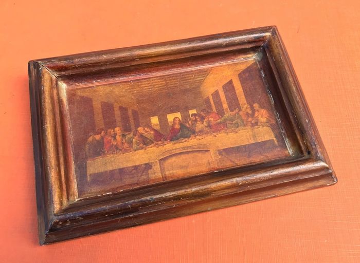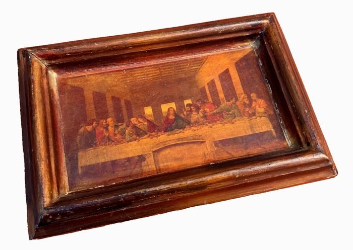 Ancien cadre religieux Chromo La Cène Le dernier soupé Cadre bois Longueur : 200mm Hauteur : 135mm Epaisseur : 18mm Poids : 190grs