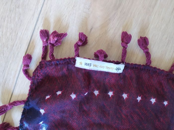 Carré IKKS pour les premiers froids de septembre ou tout simplement pour faire stylée Bordeaux et marine avec froufrous aux extrémités Possibilité de remise en main propre sur REMIREMONT ou envoi Regardez mes autres ventes #accessoirefemmenaldocel88