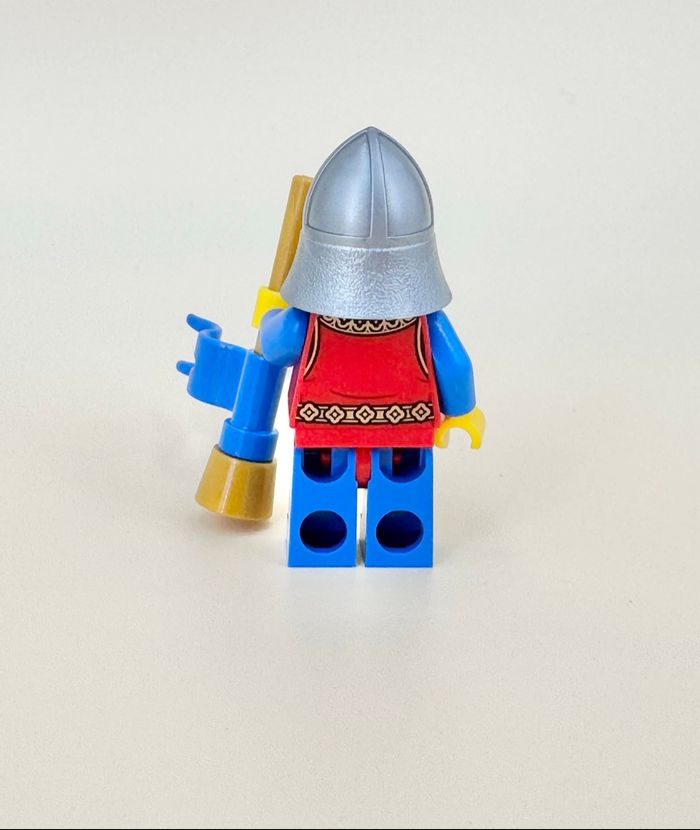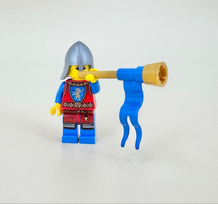 Ici, un Soldat Lion Knight qui sonne l’alerte en cas de danger - arrivée de l’ennemi ou attaque du Château des Lion Knights - permettant à tous, soldats et villageois, de s’y rendre soit pour le défendre, soit pour se mettre à l’abri.