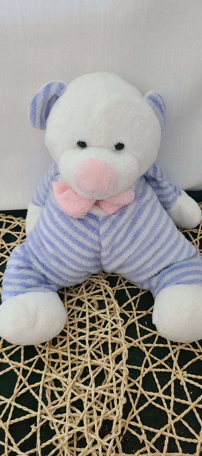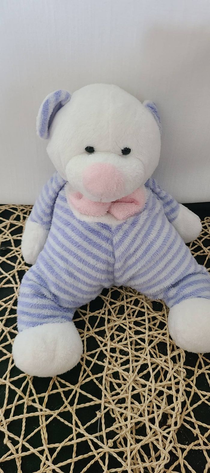 Peluche doudou ours blanc bleu rayures Althans Club 30 cm 131