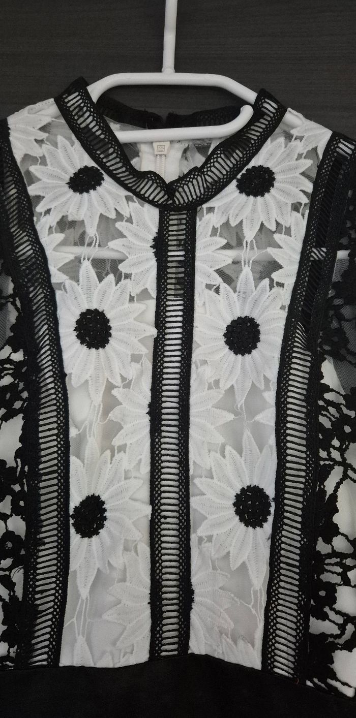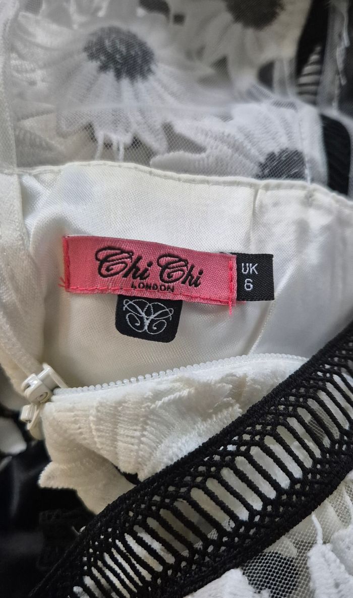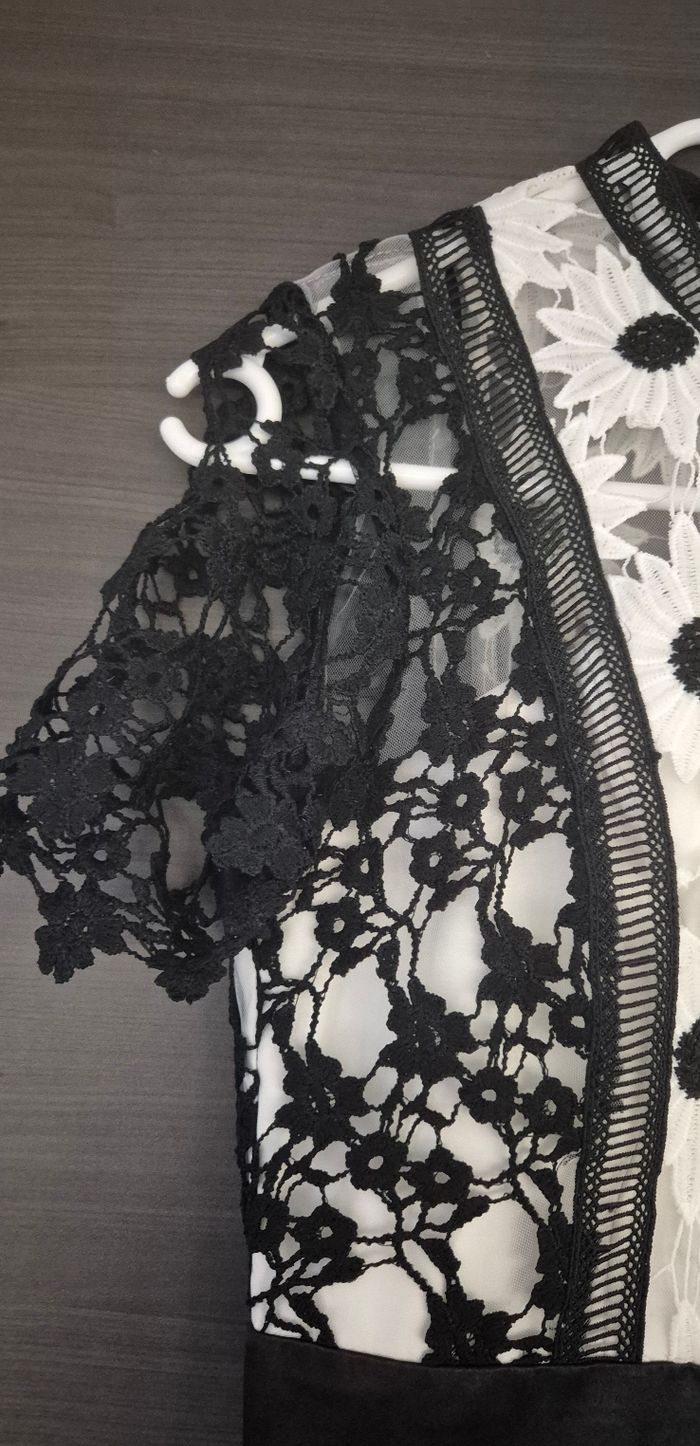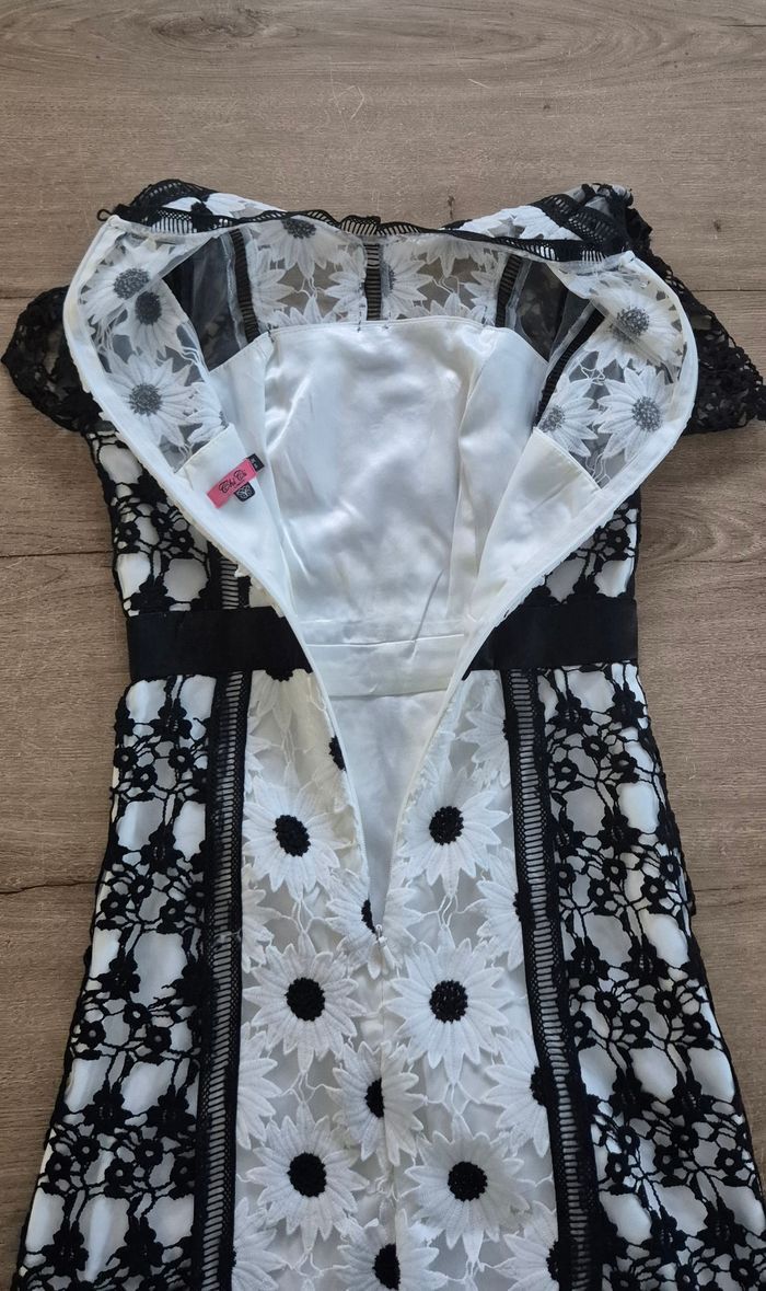 Magnifique robe en dentelle noire et blanche à motifs fleurs Chi Chi London taille 6 (correspond à du 34) Comme neuve, portée 1 fois