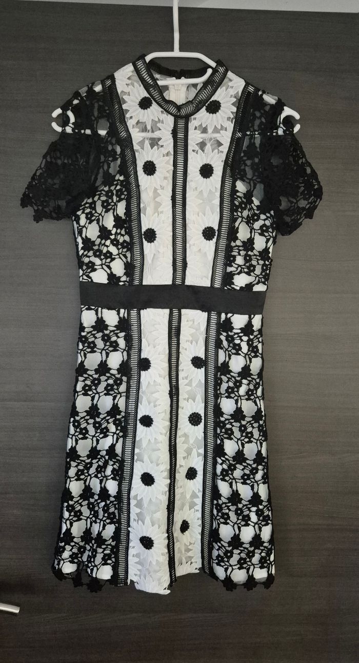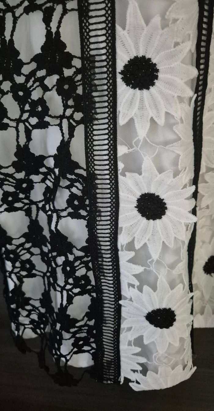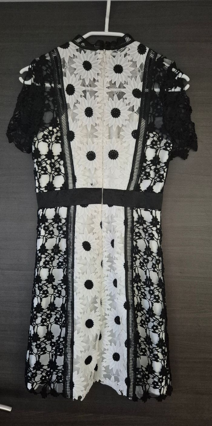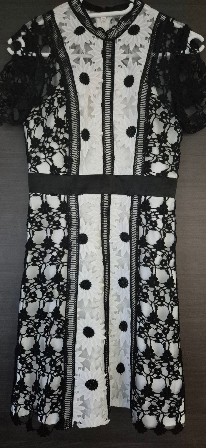Magnifique robe en dentelle noire et blanche à motifs fleurs Chi Chi London taille 6 (correspond à du 34) Comme neuve, portée 1 fois