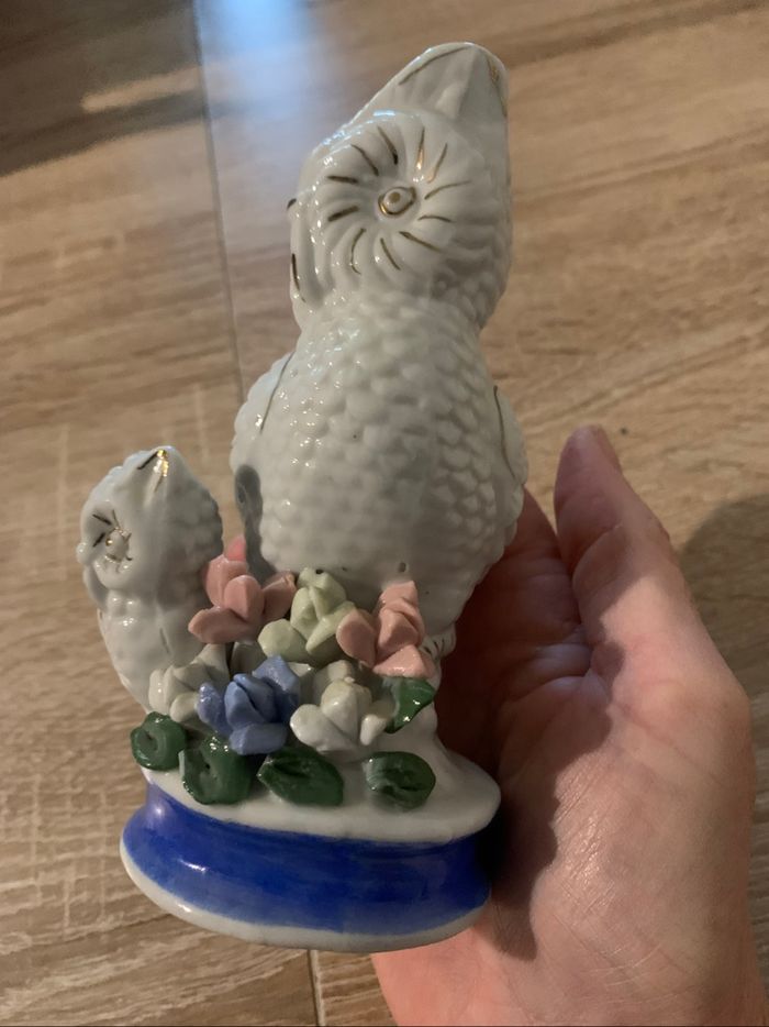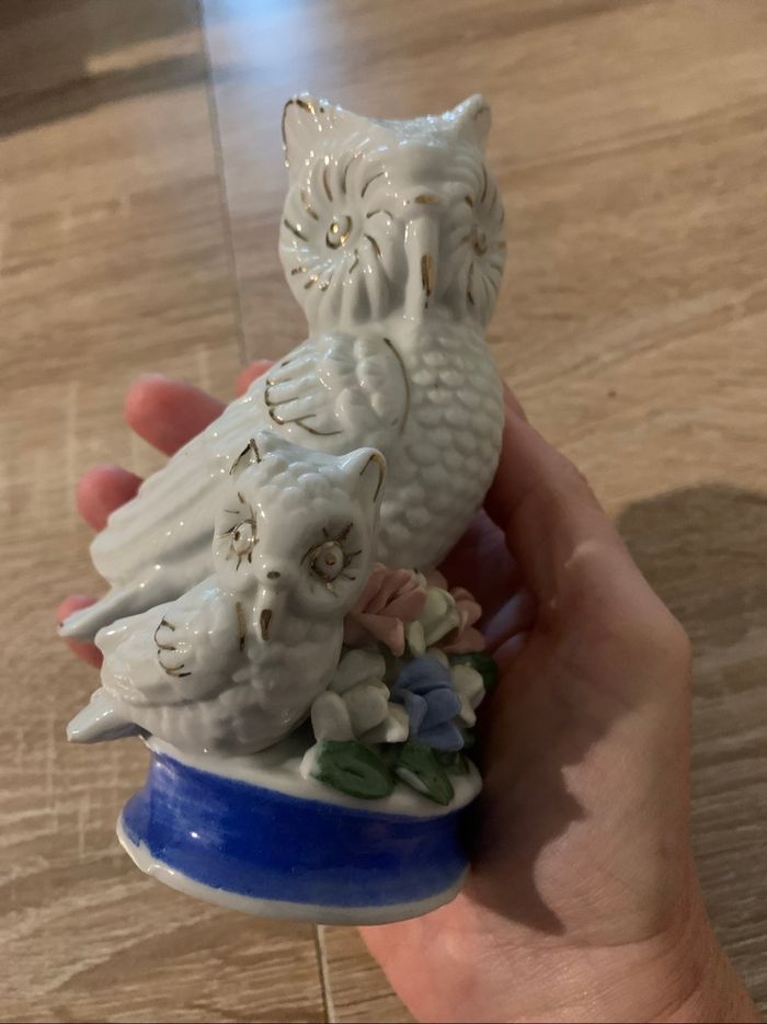 Bibelot chouette et son bébé en porcelaine
