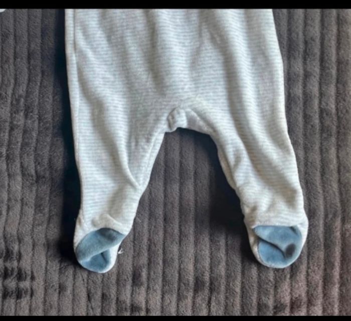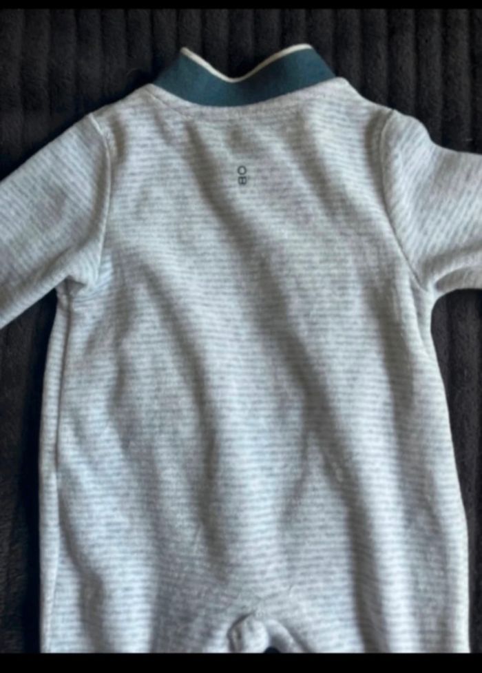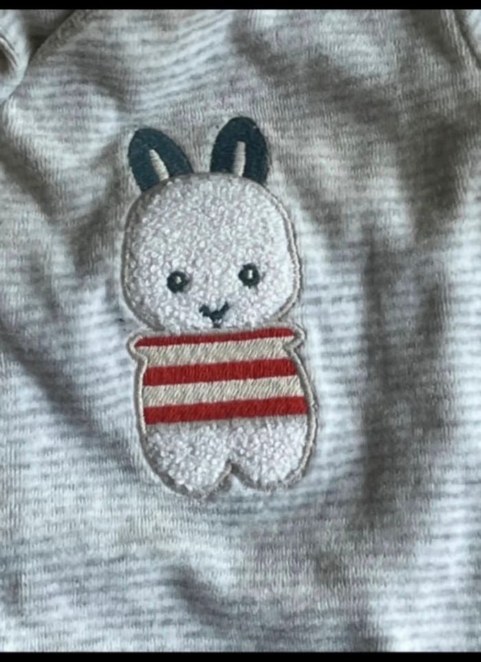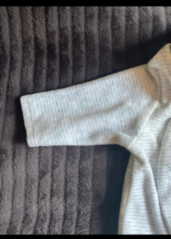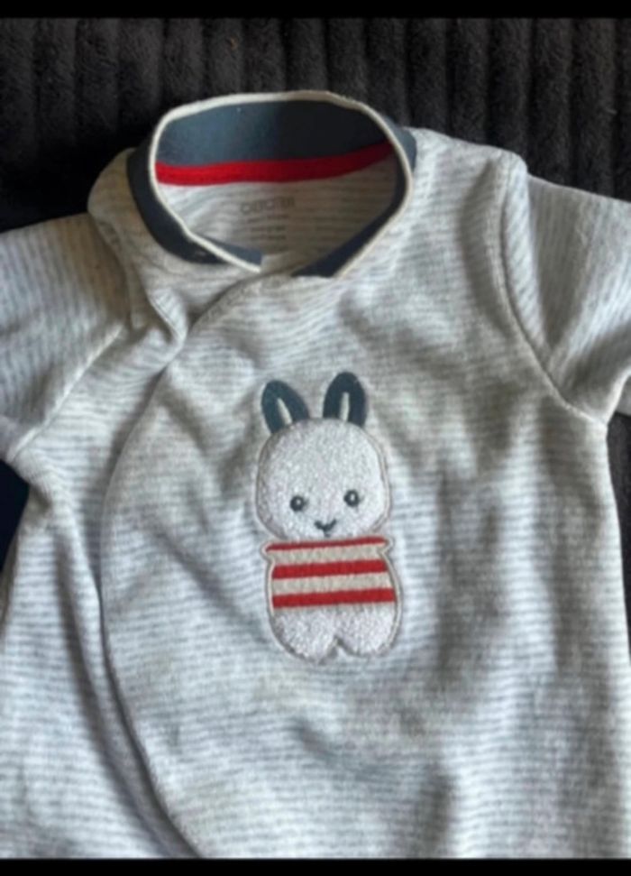 PYJAMA BÉBÉ MANCHE LONGUE MOTIF (LAPIN) OBAÏBI O MOIS (50 CM) GRIS RAYÉ BLANC SATISFAISANT 1 EURO
