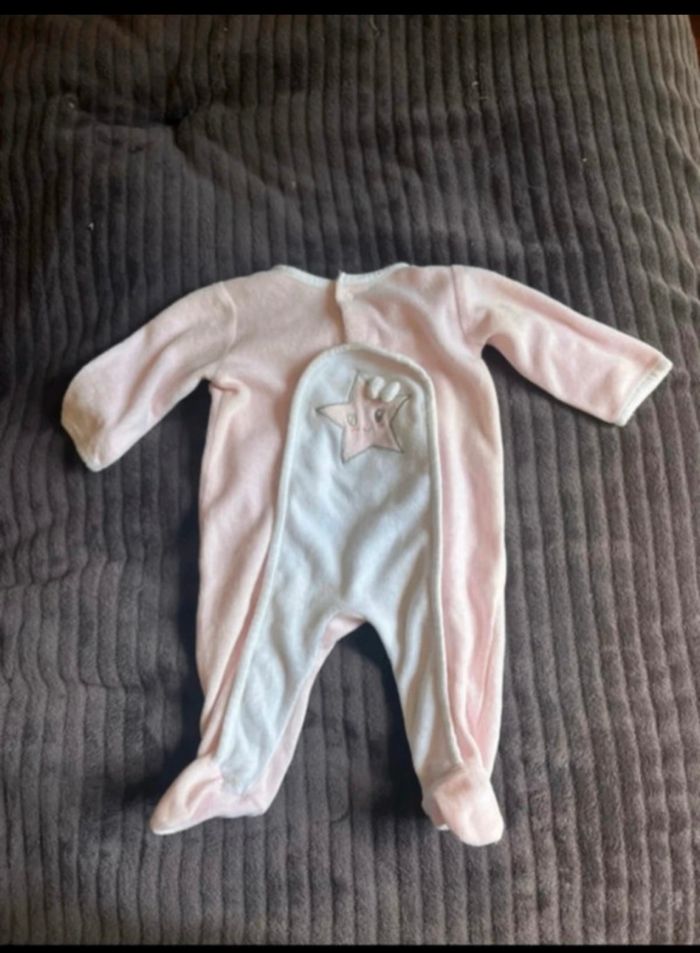 PYJAMA BÉBÉ MANCHE LONGUE 1 MOIS ( 54 à 56 CM) ROSE & BLANC PAT & RIPATON MOTIF (ÉTOILE ) BON ÉTAT 1 EURO