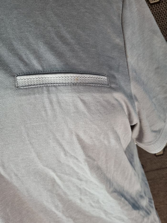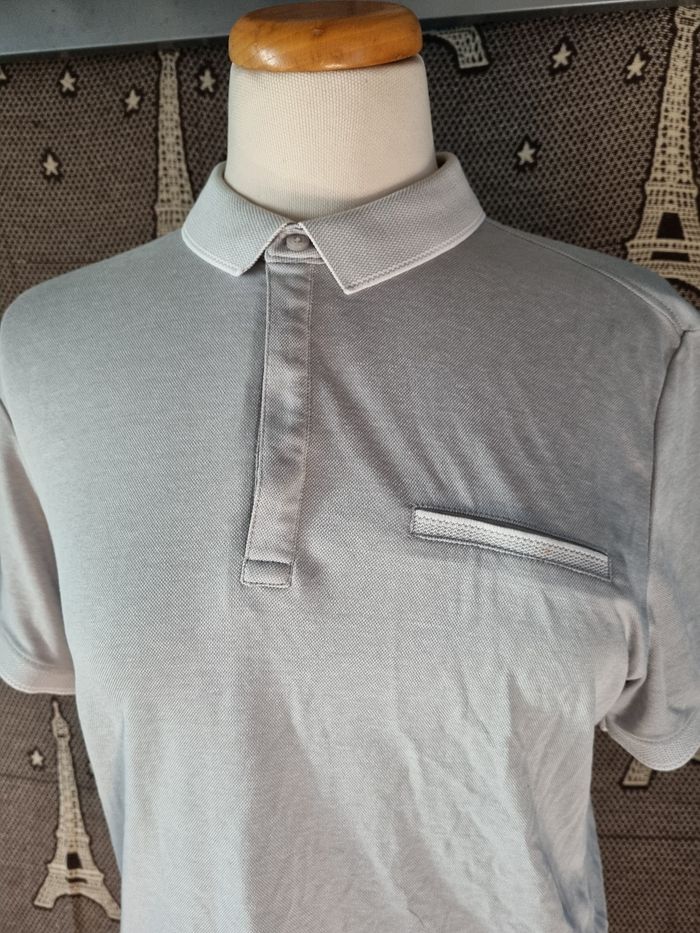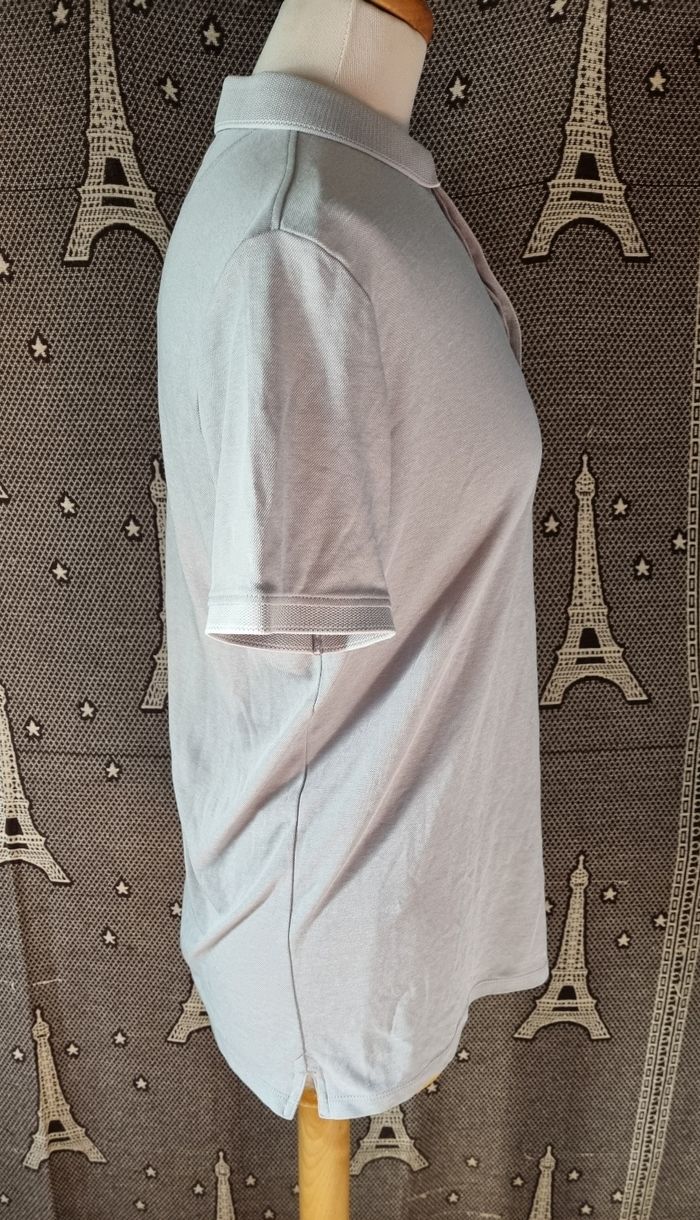 Polo gris manches courtes, taille M marque Devred,longueur 66cm, largeur 47cm, longueur épaule à aisselle 22cm, largeur aisselle à aisselle 49cm, mini tache et mini trou voir photos.