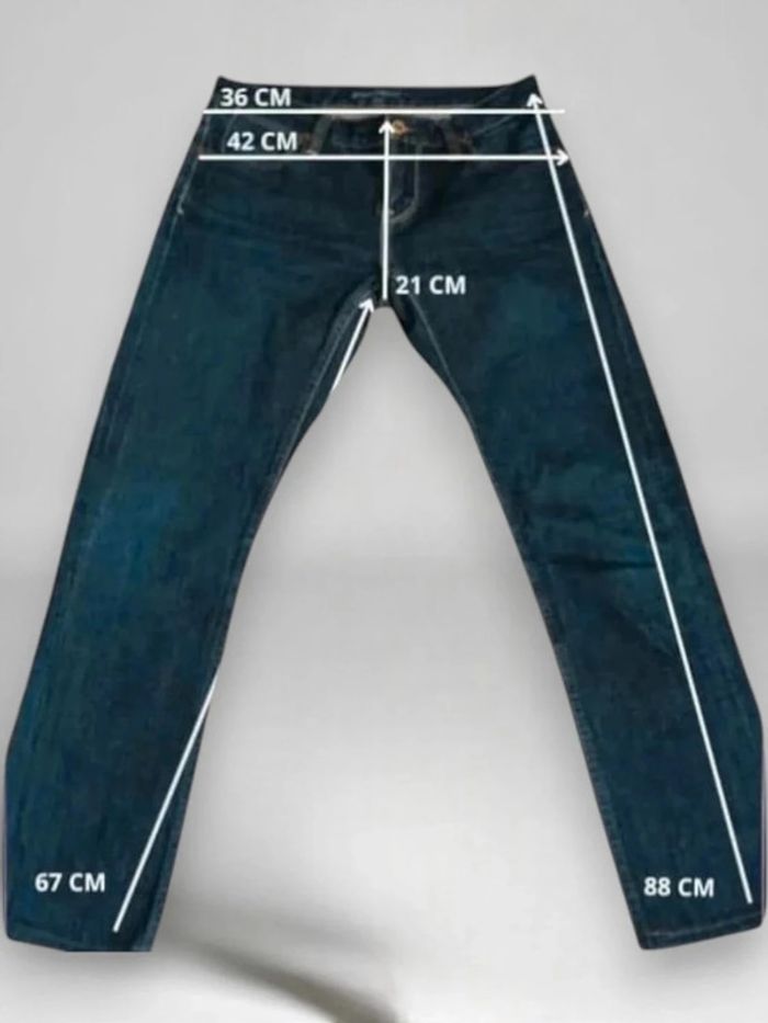 Bleu marine rivets et surpiqures finition et qualité irréprochable confortable ✂️Taille 36 Très bon état, ce jean est parfait pour un look tendance et confortable. 👗👖Les mesures exactes sont disponibles sur la dernière photo. 🚶‍♀️‍➡️Veuillez les vérifier attentivement pour vous assurer d'une coupe parfaite. 😉Conseil : Comparez les mesures avec un de vos jeans préférés, en particulier au niveau des hanches et de l'entrejambe. 🤔❓ Des questions ? 🕗 N'hésitez pas à me contacter, je suis là pour vous aider !