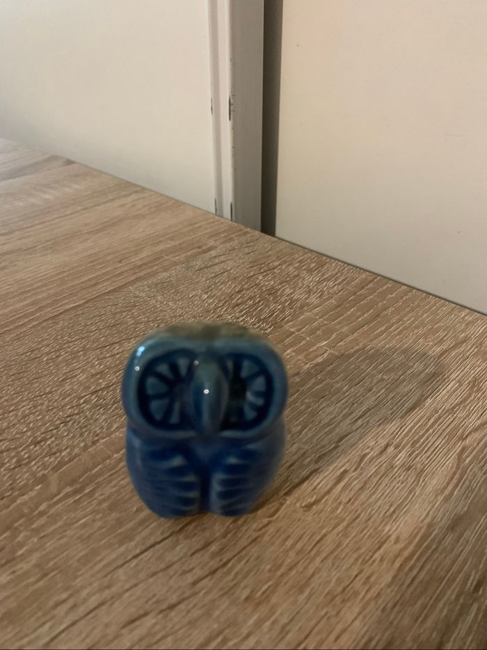 Bibelot petite chouette bleue en porcelaine - photo numéro 1