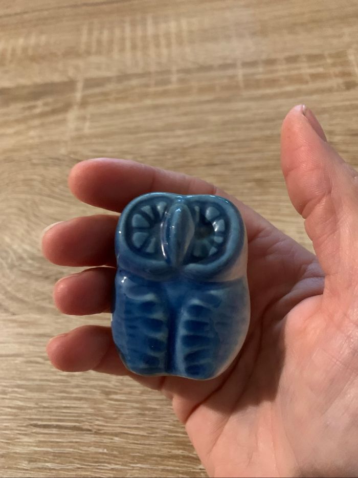 Bibelot petite chouette bleue en porcelaine - photo numéro 4