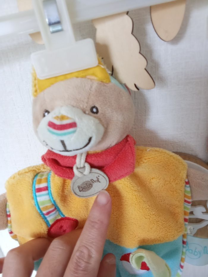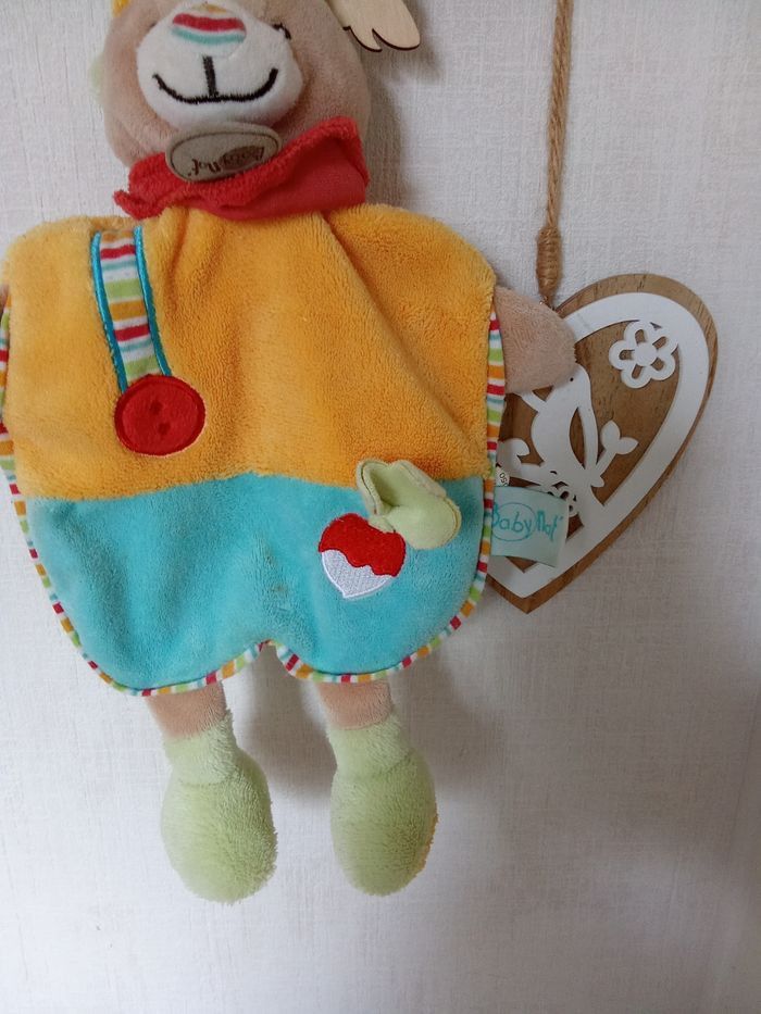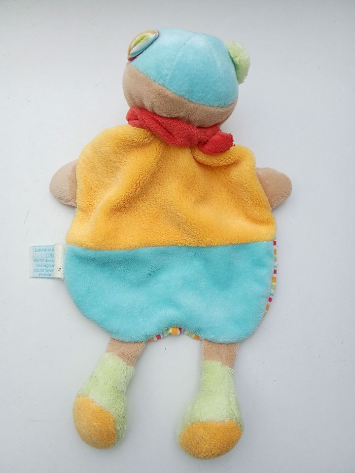 Doudou ours baby nat' orange, bleu ciel beige motif radis