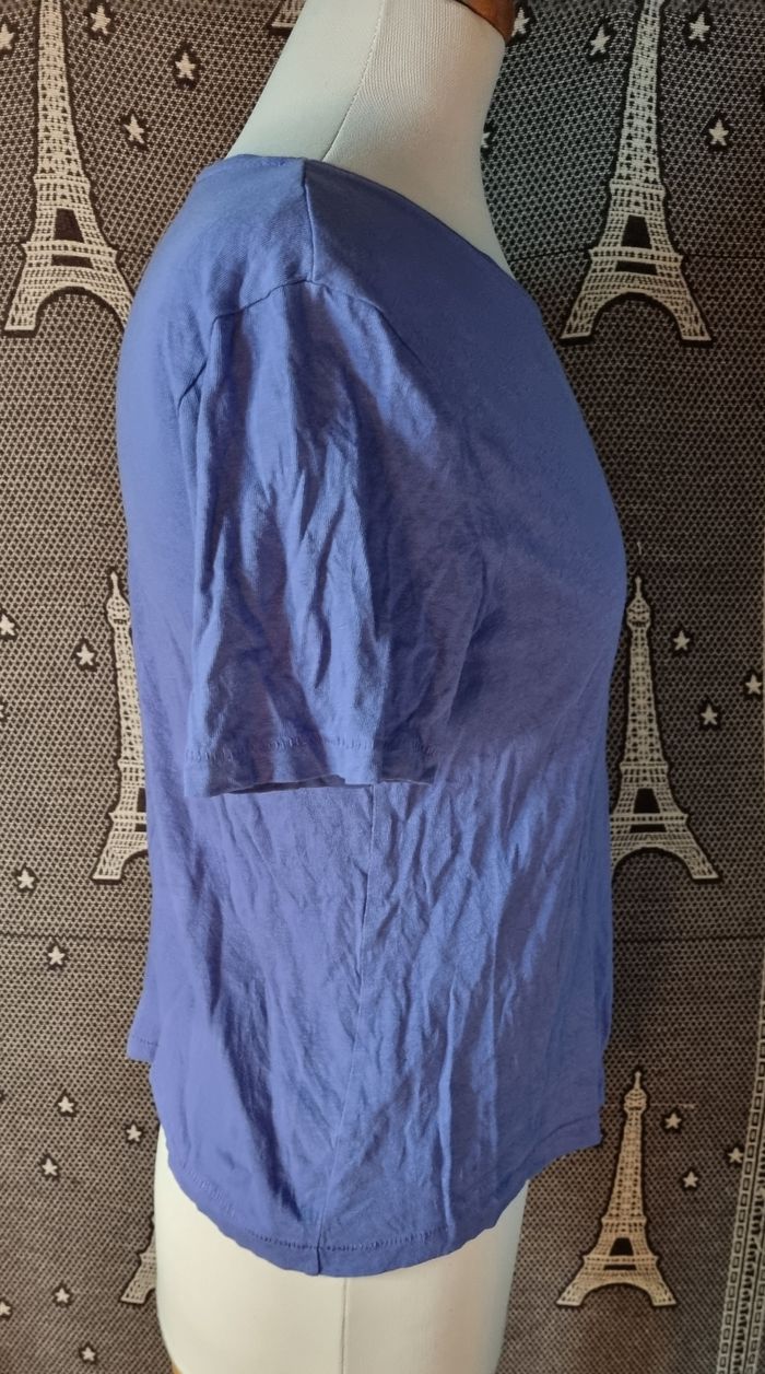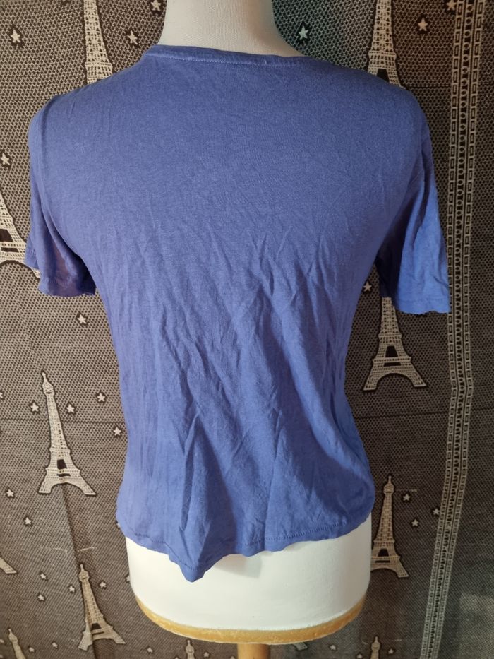 T-shirt uni violet, taille S marque Zara, longueur 50cm, largeur 44cm, longueur épaule à aisselle 16cm, largeur aisselle à aisselle 42cm.