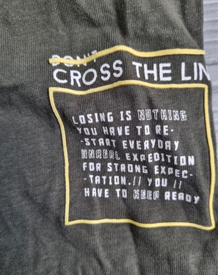 ​T-shirt Manches Longues KIABI Garçon 5 Ans Kaki tres bonne etat #kiabi #tshirtkiabi #tshirtmancheslongues #hautgarcon #vetementgarcon Taille #5ans #taille5ans #110cm #enfant5ans #taille5a #kaki #vertmilitaire #koton #coton #styleurbain #misesaison #automne #printemps #bonetat #secondevie #imprime #message #crosstheline