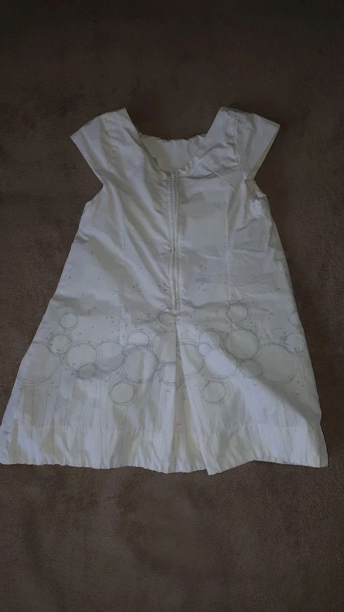 Robe légère blanche habillée okaidi Motif ronds Fermeture éclaire dans le dos À noter une légère tâche jaune (Peu visible) voir photo #virgy61fille4ans