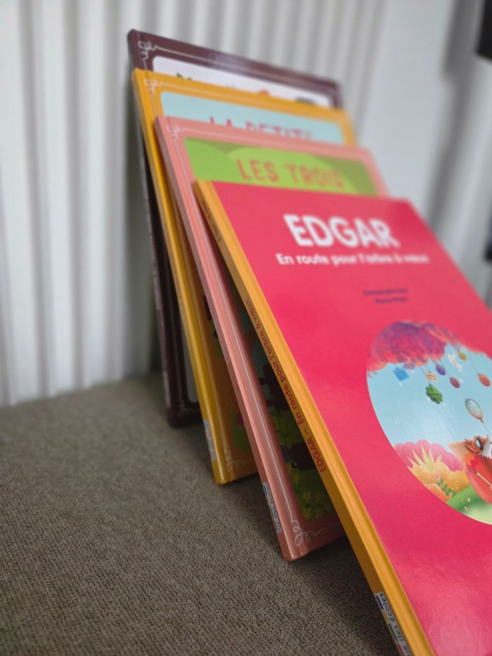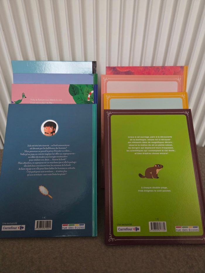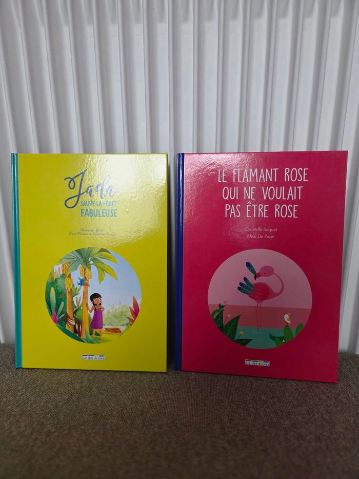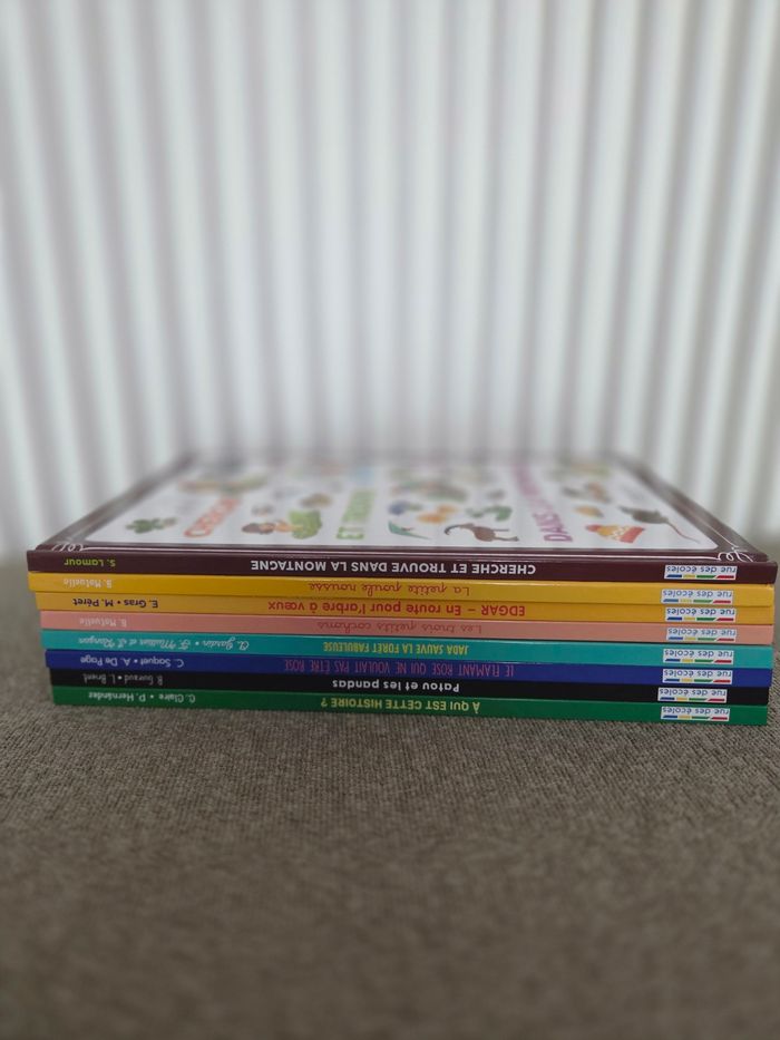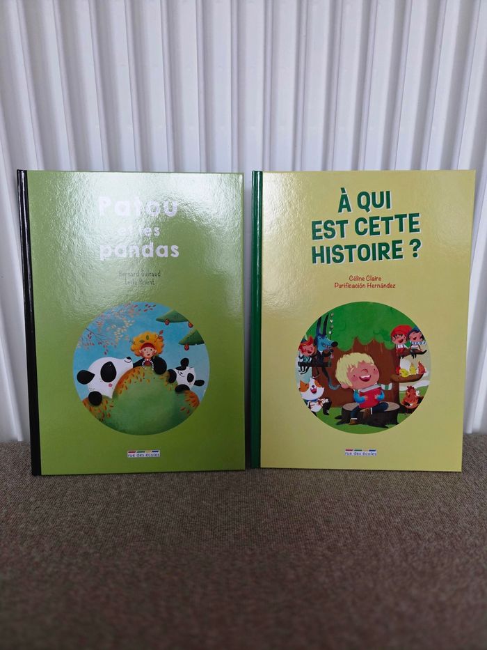 Lot de 8 Livres comme neuf. - Patou et les pandas - Edgar en route pour l'arbre à vœux - A qui est cette histoire ? - Jada sauve la forêt fabuleuse - Le flamant rose qui ne voulait pas être rose - Les trois petits Cochons - La petite poule rousse - Cherche et trouve dans la Montagne