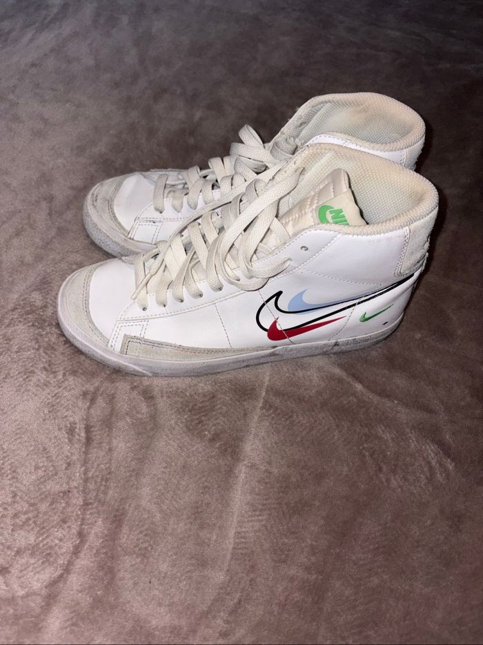 Baskets montantes Nike Blazer Mid 77 blanches taille 38 en très bon état. Petit nettoyage à prévoir. #nike #basketsnike #nikeblazer #nikeblazermid #basketsmontantes ..csoso..
