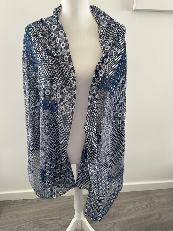 Châle étole - Excellent état - Imprimés fleurs - Plusieurs nuances de bleu et du blanc - Tissus fluide - 65x170cm - Pas d’étiquette de matière