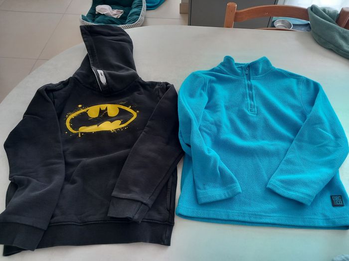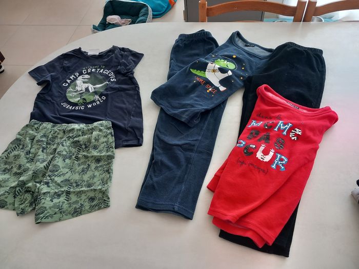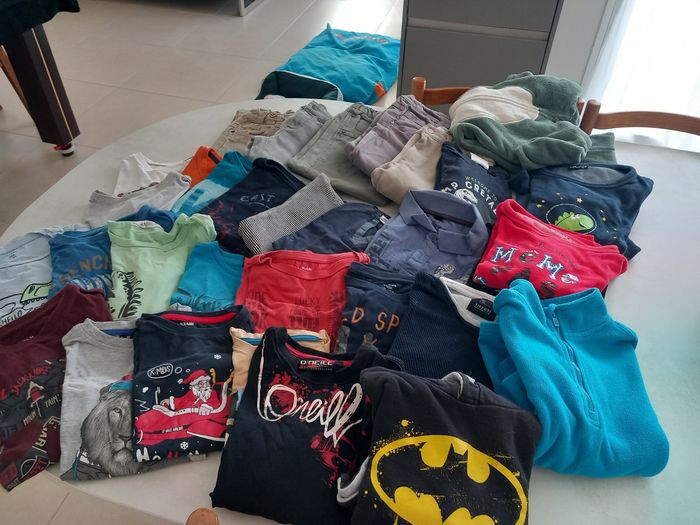 Lot 10 garçon en bon état Vêtements kiabi pour la plupart, 1 pantalon Zara, 1 t-shirt manche o'neill Le lot comprend : 5 pantalons 1 pyjashort 2 pyjamas 1 sweat à capuche Batman 1 polaire 1 combi (sur pyjama) 10 t shirts manche longue 1 pull sweat