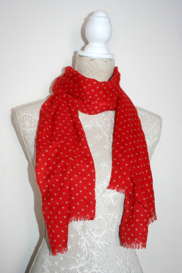 Foulard coquelicot pois beige 148x48cm - photo numéro 1