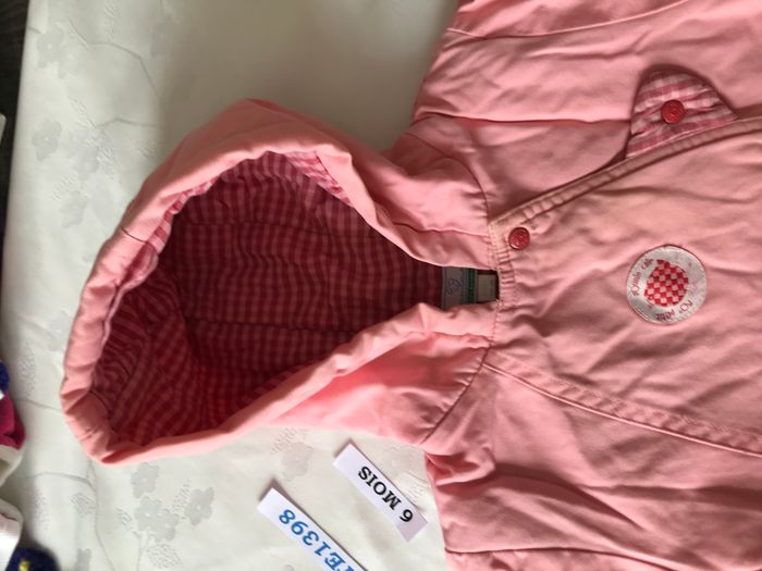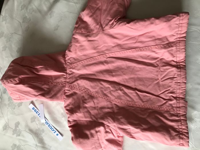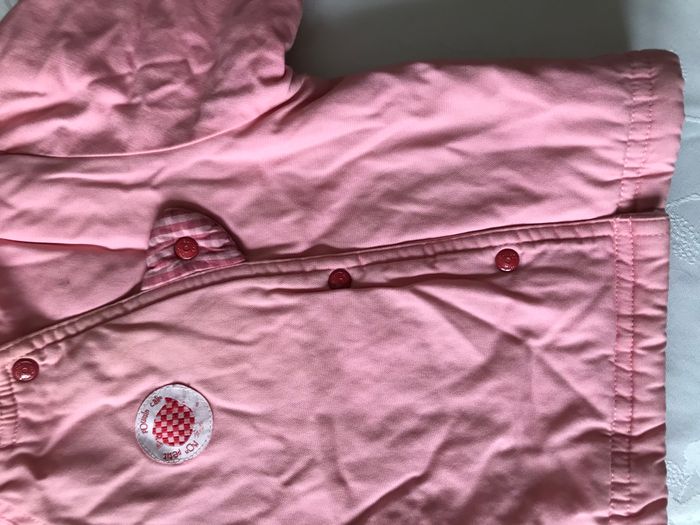 Manteau rose à pressions avec capuche (Vertbaudet) En bon état, tâché a la 1ère boutonnière (voir photos)