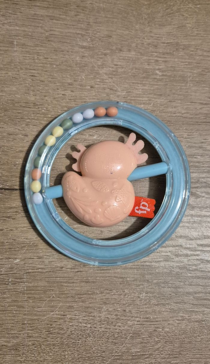Hochet avec billes aux couleurs pastel servant d'anneau de dentition texturé, avec koala rotatif au centre Fisher Price Très bon état