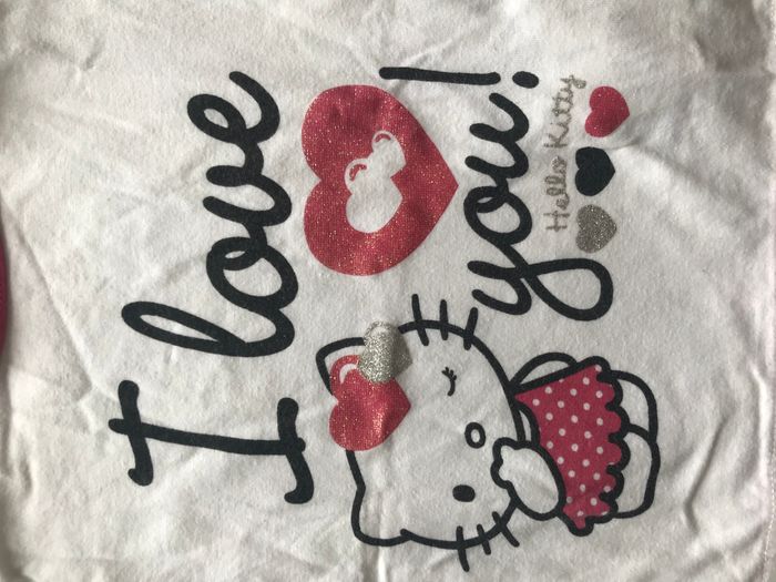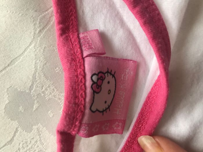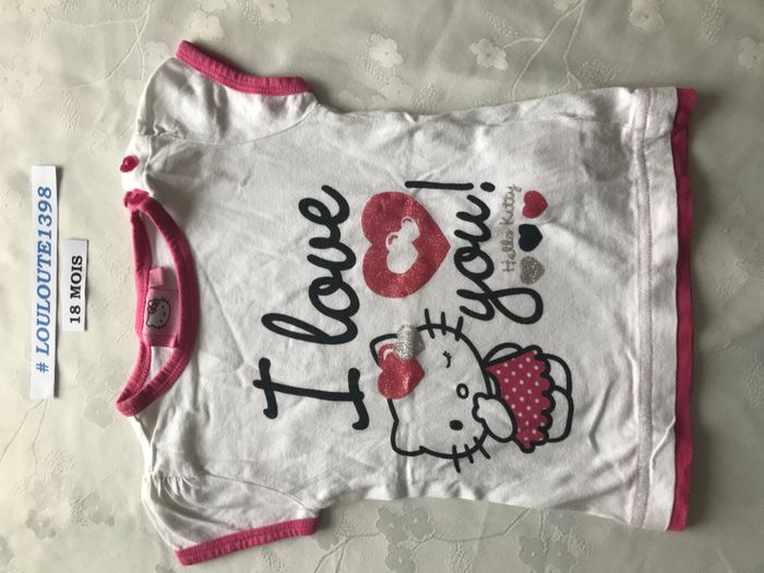Lot de T-Shirts comprenant : - T-Shirt blanc à manches courtes (Justine et Léa) - T-shirt à manches courtes blanc et rose « Hello Kitty » (La Halle) Le lot peut être séparé 😉