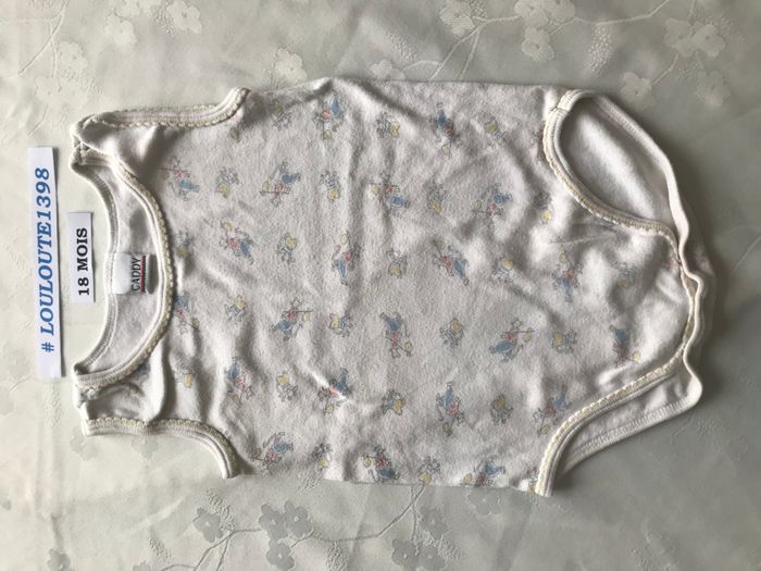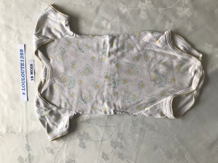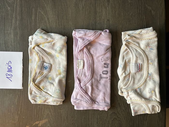 Lot de Bodies comprenant : - Bodie à manches courtes écru à motifs (Petit Bateau), en bon état - Bodie sans manches écru (Caddy), en bon état - Bodie mauve à manches courtes (Mots d’Enfants), en bon état Le lot peut être séparé 😉