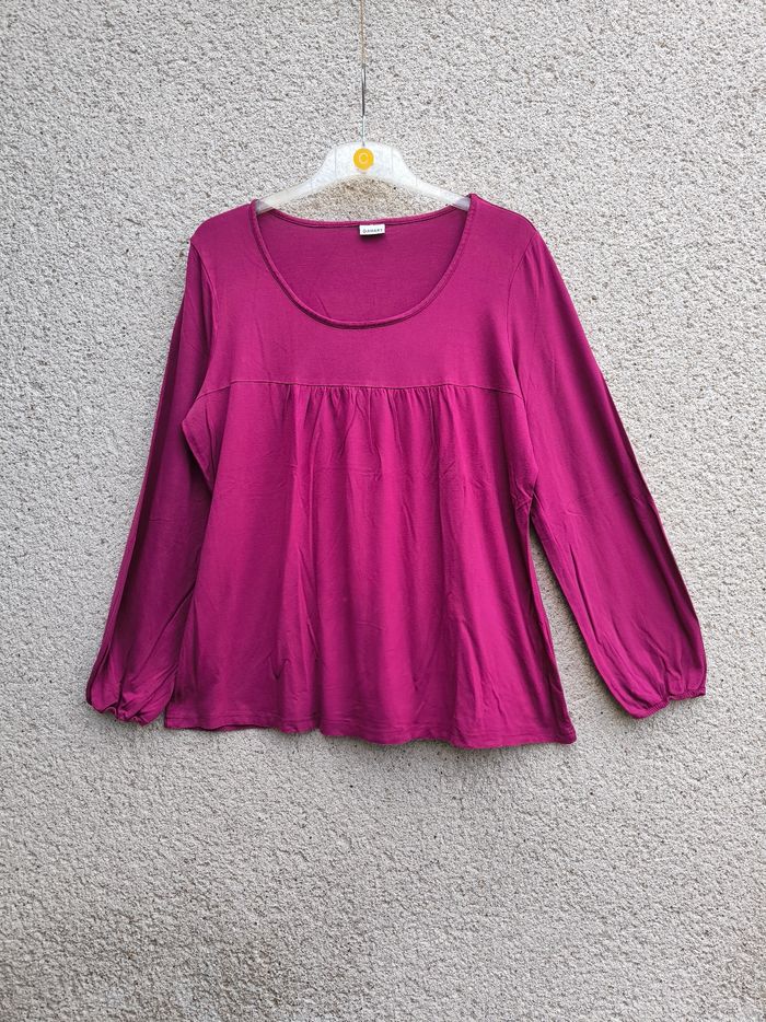 T-shirt/Blouse à manches longues Marque Damart Taille 46-48 • Coloris violet • Col rond avec fronces • Bas des manches élastique • Tissu fin, stretch • Petite marque à l'avant, quelques bouloches Largeur épaule à épaule non étirée : 39 cm Largeur épaule à épaule étirée au maximum : 60 cm Largeur aisselle à aisselle non étirée : 56 cm Largeur aisselle à aisselle étirée au maximum : 82 cm Longueur manche : 59 cm Longueur totale : 65 cm Longueur aisselle : 45 cm En très bon état #evelyne_taille_46 #evelyne_taille_48