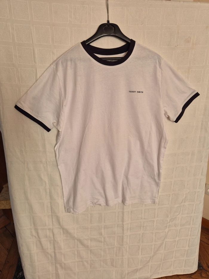 ⬇️mes autres annonces de vêtement homme👉#cg89homme un tshirt blanc avec liseré. Il mesure 57 cm aux aisselles et 70 cm de longueur très bon état - taille L - marque Teddy Smith #tshirt #haut #tshirtuni #teddysmith