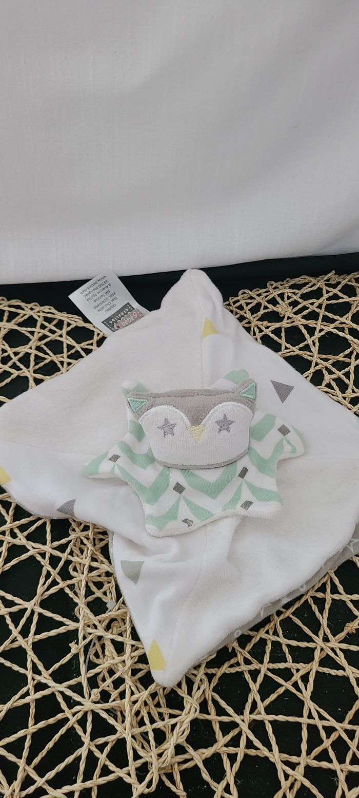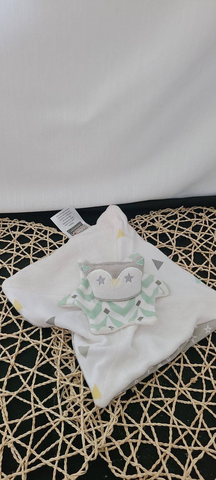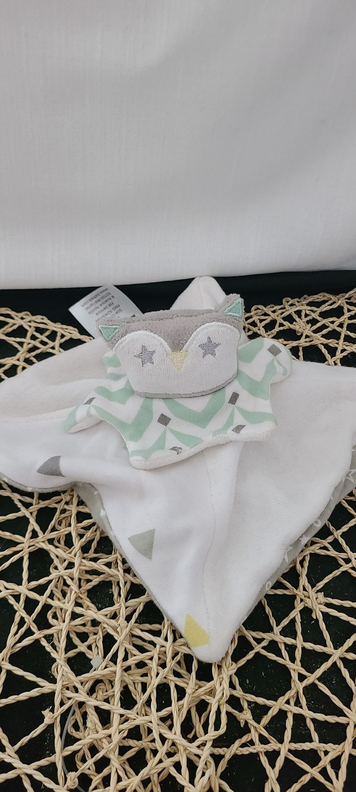 Doudou plat hibou BÉBÉ 9 chouette triangle blanc gris carré - photo numéro 1
