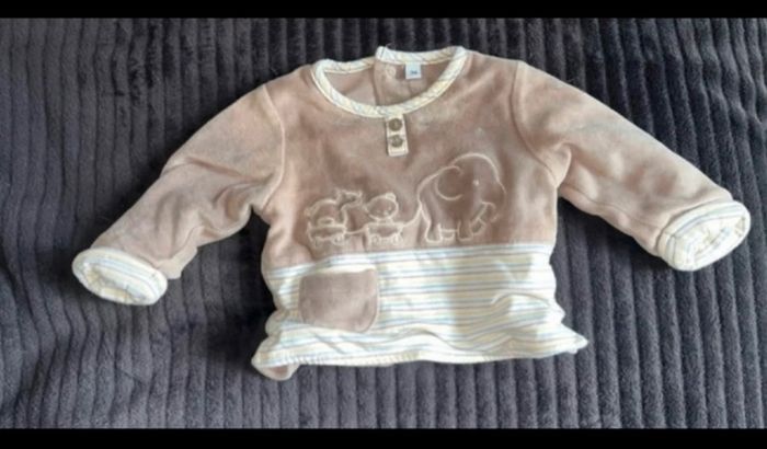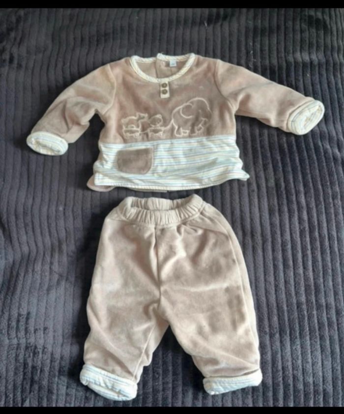 PYJAMA BÉBÉ MANCHE LONGUE DEUX PIÈCE 3 MOIS ( 60 À 62 CM) SANS MARQUE MOTIF (ÉLÉPHANT, NOURNOURS...) MARON CLAIR BON ÉTAT 1 EURO