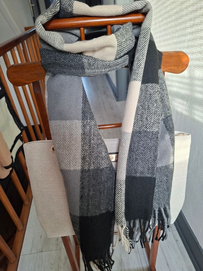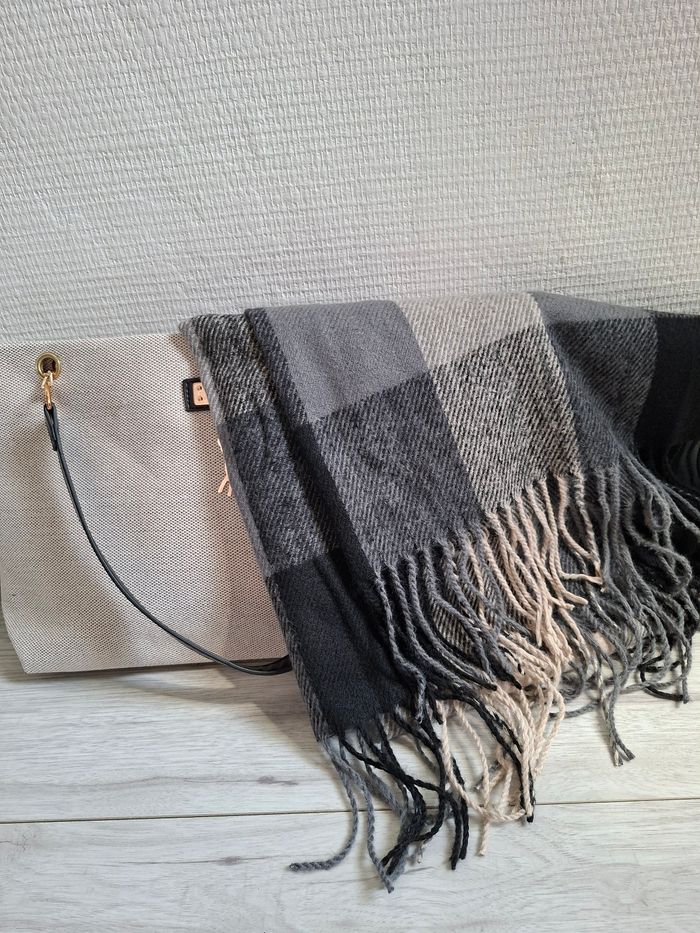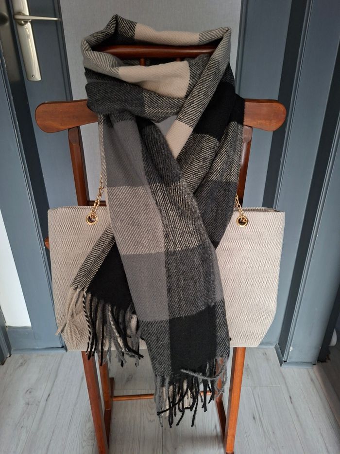 Écharpe chaude à carreaux – style élégant et confortable Misez sur le style et le confort avec cette magnifique écharpe à carreaux noirs, gris et beige. Taille généreuse pour se couvrir parfaitement ou porter en châle Matière douce et chaude, idéale pour l’automne et l’hiver Style intemporel qui s’accorde avec toutes vos tenues Franges élégantes pour une touche chic Taille :180×70cm