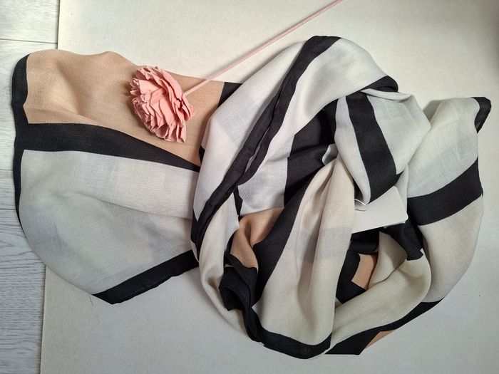 Écharpe élégante aux motifs graphiques noir, beige et écru. Polyvalente : peut se porter autour du cou ou façon châle sur les épaules. Tissu doux et léger, idéal pour la mi-saison ou donner une touche sophistiquée à une tenue. État : Comme neuf ✨ Taille : Unique Couleurs : Noir / Beige / Écru Style : Chic, moderne, intemporel 📦 Envoi rapide et soigné.