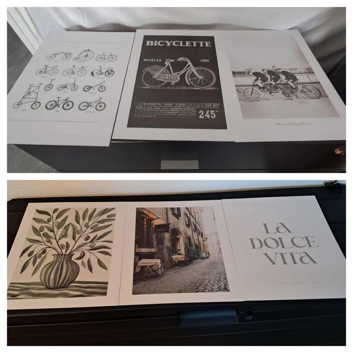 🖼️ Lot de 6 affiches rétro sur le thème du vélo Thèmes : Évolution de la bicyclette, Vélo vintage, Dolce vita à vélo Coloris élégants : noir et blanc + tons vert olivier pour une touche de charme et de douceur Style rétro chic, parfait pour une déco salon, bureau, ou couloir esprit vintage 🌿🚲 Jamais utilisées, état neuf. Maison non fumeur, première main, pas d’animaux. Ces affiches apporteront une ambiance nostalgique et raffinée à votre intérieur ! 💫