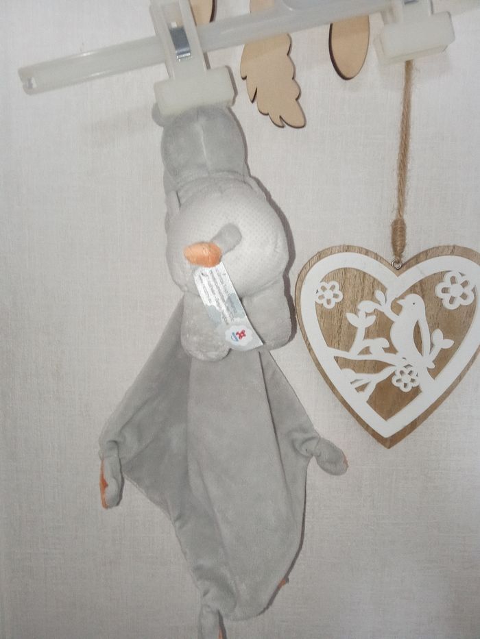 Doudou hippopotame, rhinocéros gris, blanc, orange, vert , broderie  Riri, mouchoir, étiquettes - photo numéro 7