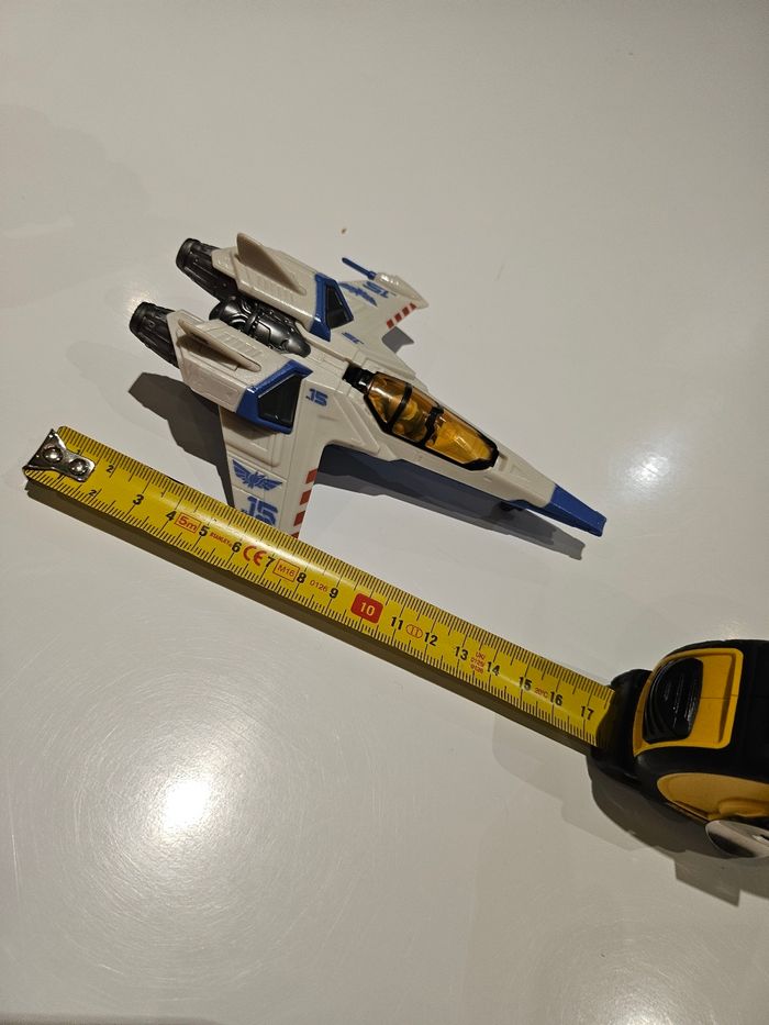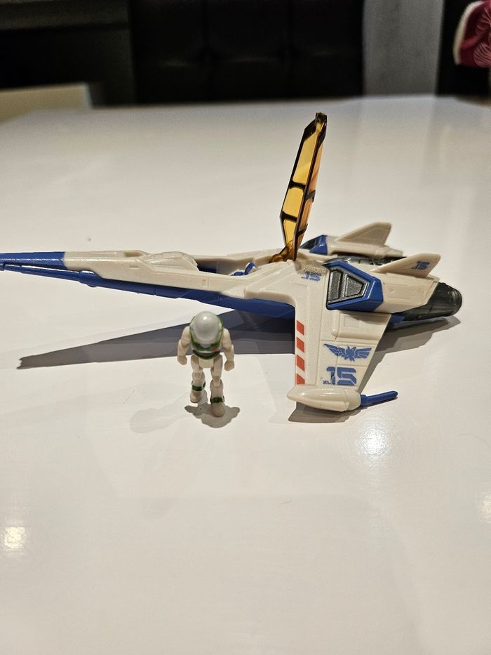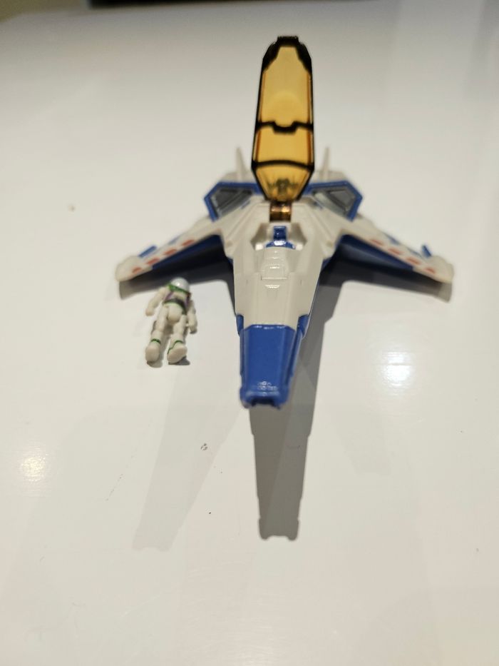 Vaisseau d'environ 15 cm avec petite figurine du film Buzz l'éclair. Achetés sur le DisneyStore.