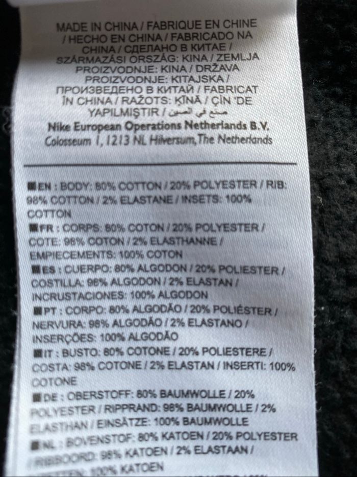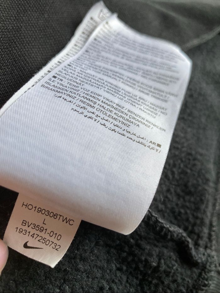 Pull sweat-shirt Nike Encolure ronde Manches raglan Bandes grises et blanches sur les manches Molletonné sur l'envers 80% coton 20% polyester taille L enfant 147-158 cm Bon état car le noir est passé et le blanc grisaille